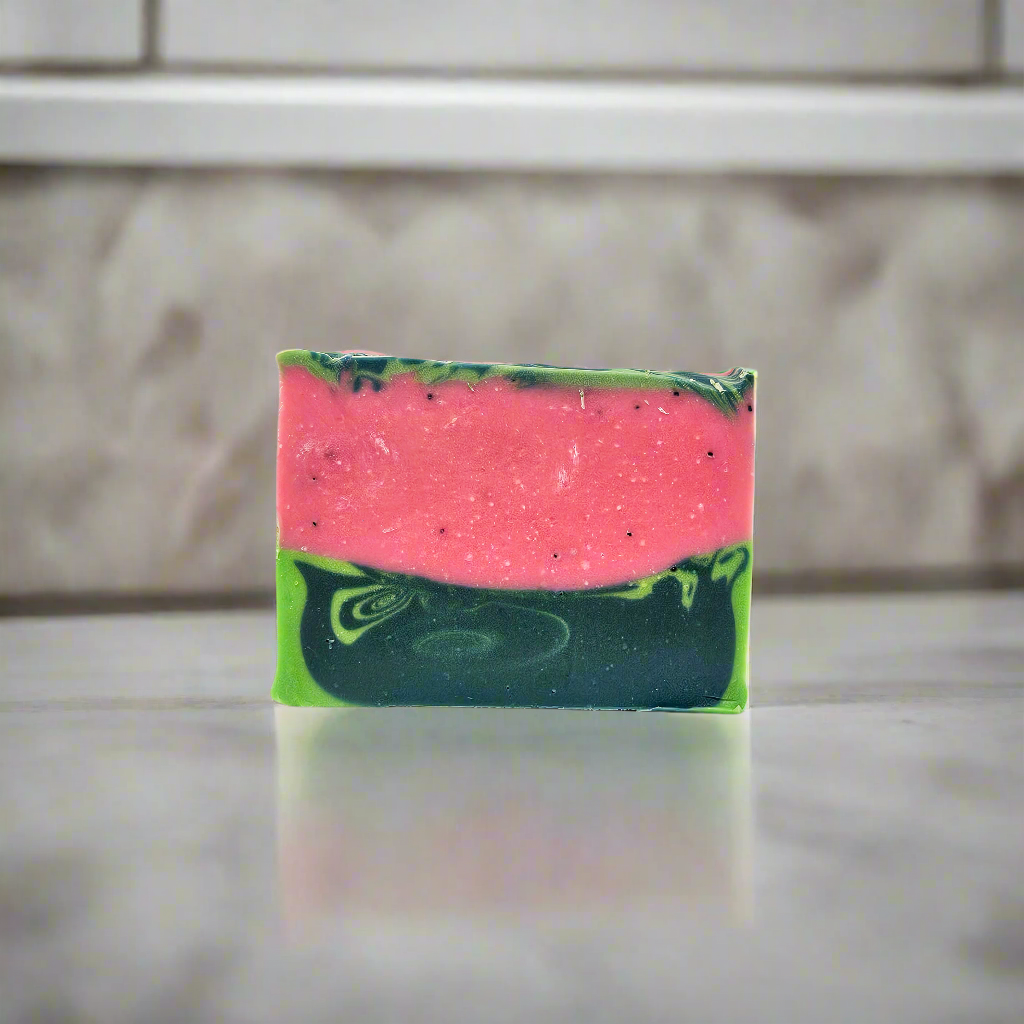 This refreshing soap is scented with the delicious aroma of fresh, juicy watermelon, leaving your skin feeling hydrated and smelling sweet. Blueberry seeds added for a gentle exfoliation. A perfect way to start your day with a burst of fruity goodness.